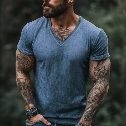 Product Name:Men's Retro Casual Shabby Printed V-Neck Short Sleeve T-Shirt